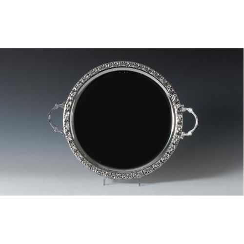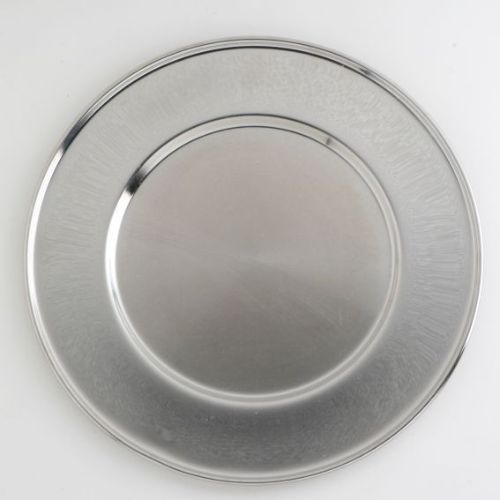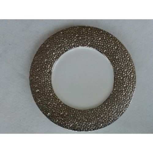 SOT018 Sottopiatto in porcellana bianca con bordo martellato color argento ø 30 cm