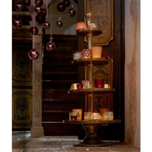 DEC105 Alzata Shabby in metallo bianco 4 piani tonda h147 ø 45 cm