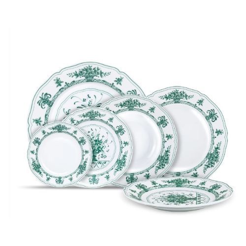 SOT027 Sottopiatto in porcellana bianca con decoro verde ø 32 cm