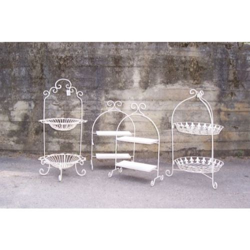 DEC106 Alzata Shabby in metallo bianco 3 piani tonda h108 ø 37 cm